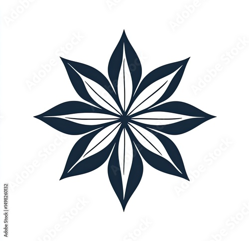 flower, star, stylised, elegant, dark, blue, white, simple, design, minimalist, graphic, illustration, vector, floral, botanical, pattern, symmetric, geometric, abstract, art, decoration, ornament, motif, emblem, logotype, symbol, icon, shape, line, form, detail, texture, contrast, clean, sharp, crisp, refined, sophisticated, modern, classic, timeless, beauty, nature, blossom, bloom, leaf, point