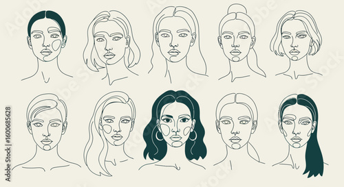 linear, minimalist, female, face, portrait, elegance, beauty, outline, monochrome, neutral, collection, expression, coiffure, diverse, fashion, modern, artistic, woman, design, illustration, simple, line, drawing, profile, head, contemporary, artwork, abstract, graphic, black-and-white, chic, aesthetic, trendy