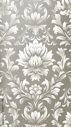 damask, floral, pattern, background, luxury, elegant, decorative, ornate, vintage, sophisticated, silver, white, texture, abstract, design, wallpaper, fabric, invitation, wedding, graphic, artwork, aesthetic, minimalist, classic, retro, traditional, nature, botany, swirl, flourishes, flourish, leaf, leaf, flora, foliage, embroidery, ornament, motif, filigree, lace, baroque, rococo, plush, rich