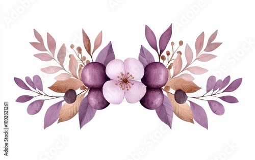 watercolor, arrangement, elegant, chaplet, frame, flower, design, floral, leaf, decoration, bloom, tree branch, plant, art, background, pattern, texture, leaves, beauty, blossom, nature, garden, trend, vibrant, single, display, concept, festive, season, charming, purple, motif, wedding, hand-drawn