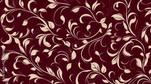 textile, fabric, swirl, pattern, burgundy, design, motif, background, decorative, arabesque, vine, scroll, intricate, texture, graphic, ornate, bloom, floral, print, colours, wallpaper, flower, vector, luxurious, plant, seamless, leaf, style, rich, dark, vintage, art, detail, illustration, sophisticated, retro, elegant, beauty, nature, visual, aesthetic, classic, repeat