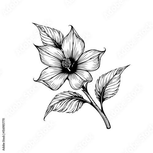Elegant floral illustration showcasing a delicate flower with intricate line work and detailed petals drawing