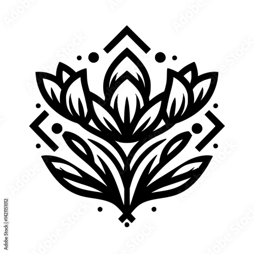 vector, floral, mandala, flower, botanical, line art, black-and-white, symmetry, geometric, design element, illustration, graphic, pattern, decorative, elegant, minimalist, logotype, tattoo, meditation, spiritual, zen, wellness, branding, ornament, emblem