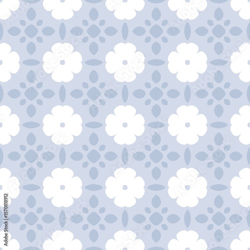 Elegant floral repeat pattern on a light blue trifold. calming floral pattern with soft petals and subtle blue accents. Floral geometric symmetry grid seamless pattern background.