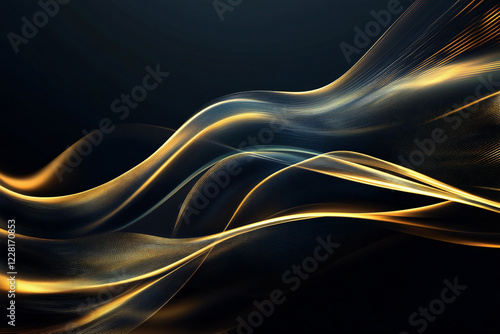 Elegant Flowing Golden Waves with Glowing Particles on a Dark Background, Abstract Futuristic Texture and Luxury Artistic Design