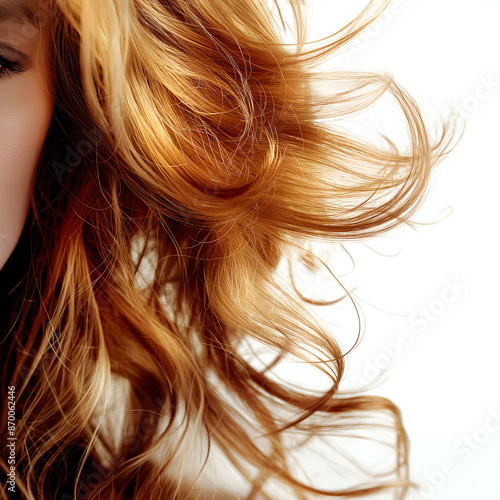 Elegant Flowing Hair in Close-Up View on Isolated Background