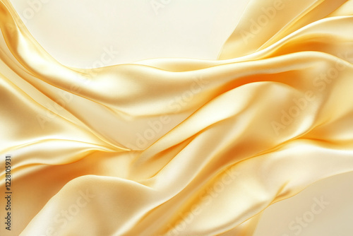 Elegant Flowing Silk Fabric with Delicate Golden Folds and Soft Texture, Luxurious Abstract Textile Background with Pastel Tones