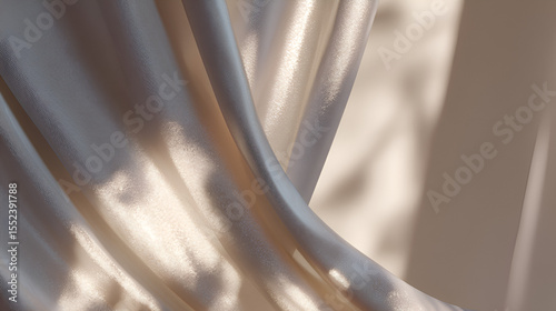 Elegant folds of shimmering fabric catch the light in a dance of shadows and subtle textures.