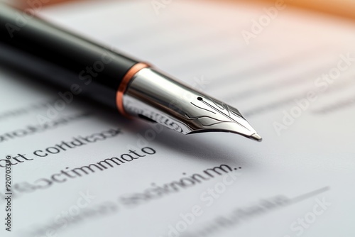 fountain, pen, letter, writing, paper, ink, handwriting, elegant, classic, luxury, business, communication, message, note, contract, document, black, white, monochrome, close, up, detail, nobody, indoor, day, horizontal, office, writer, author, journalist, poet, calligraphy, stationery, nib, tip, metal, shiny, smooth, vintage, old, fashioned, timeless, sophisticated