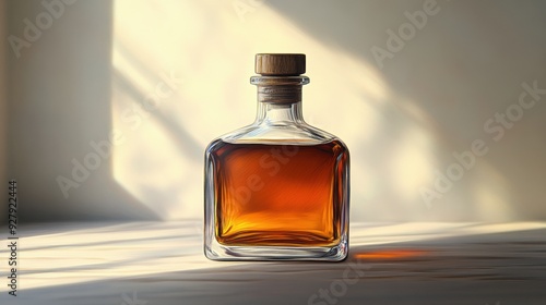 Elegant Glass Bottle with Amber Liquid and Natural Light