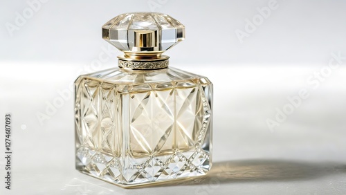 Elegant Glass Perfume Bottle with Intricate Design on a White Background