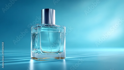 Elegant glass perfume bottle with metallic cap showcasing a refreshing blue liquid perfect for modern beauty and lifestyle advertising campaigns