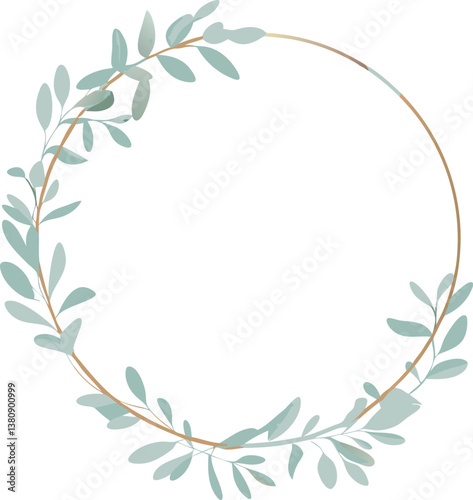 chaplet, circle, gold, leaf, green, greenery, floral, frame, border, design, element, decoration, invitation, wedding, botanical, plant, foliage, elegant, simple, minimal, stylish, artistic, template, background, nature, organic, subtile, soft, pastel, colours, illustration, graphic, vector, image, clip art, drawing, art, aesthetic, pretty, beautiful, decorative, circular, tree branch, round, shape, pattern
