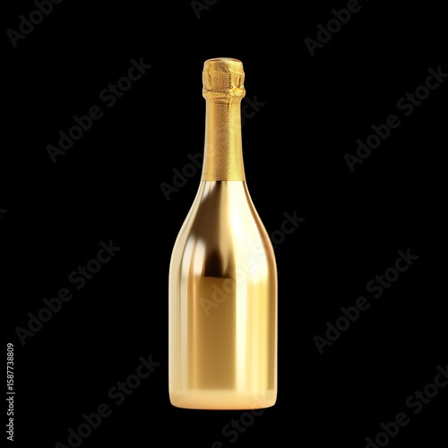 Elegant Golden Champagne Bottle on Black Background for Celebrations, Parties, and Special Occasions