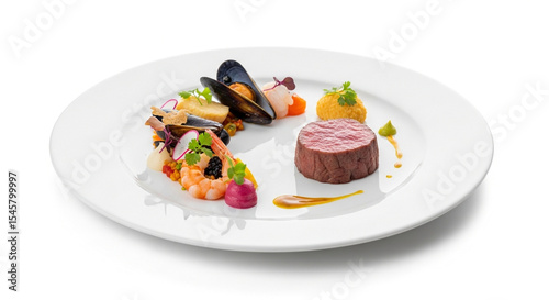 Elegant Gourmet Seafood and Beef Plate Fine Dining Dish