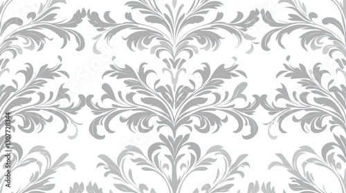 Elegant gray floral damask pattern on white background. Possible use wallpaper, fabric, design element