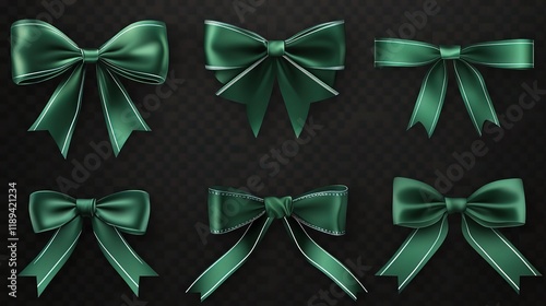 Elegant Green Ribbons and Bows on Transparent Background Elements