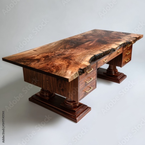 Elegant Handmade Wooden Desk with Natural Edge and Rich Grain Patterns