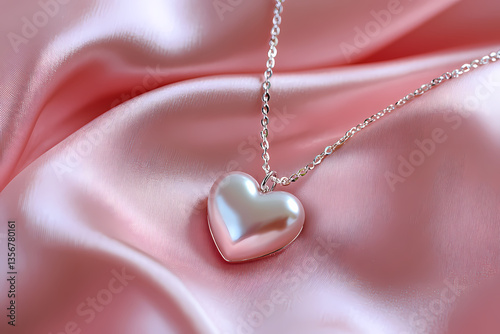 Elegant Heart Necklace: A stunning heart-shaped pendant necklace rests gracefully on a bed of silky, flowing fabric, a perfect expression of love and romance.