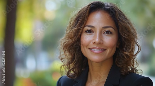 smiling, hispanic, businesswoman, blurred, background, professional, confident, happy, female, corporate, office, executive, entrepreneur, success, leadership, manager, workplace, career, formal, modern, elegant, attractive, ambitious, stylish, business