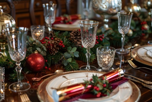 holiday, table, setting, christmas, centrepiece, festive, elegant, cracker, flower, place, setting, decoration, seasonal, celebration, glassware, dining, dinner, red, white, foliage, silverware, plate, napkin, tableware, arrangement, event, party, stylish, beautiful, classic, decor, elaborate, intricate, inviting, joyful, luxurious, merry, ornamental, preparation, traditional, welcoming, winter