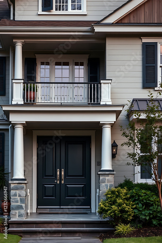 Elegant Home Exterior with Classic Design and Modern Amenities. This stunning house features a beautiful facade, grand entrance, and charming balcony. Perfect for luxury real estate listings.