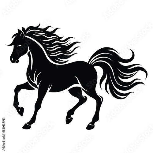 Elegant Horse Silhouette Design, Dynamic Black Stallion Vector for Tattoo and Artwork