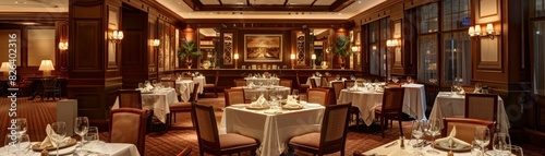 elegant, hotel, dining, room, set, table, stylish, lighting, upscale, decor, sophisticated, inviting, atmosphere, honed, hospitality, theme, isolated, background