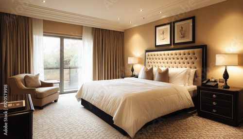 hotel, room, bedchamber, bed, luxury, elegant, interior, design, suite, accommodation, travel, vacation, comfort, style, furniture, decor, window, curtain, balcony, access, roomy, relaxing, upscale, amenity, hospitality, inviting, peaceful, get-away, retreat