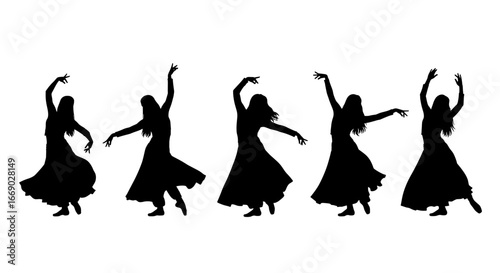 Elegant Indian dancers performing a traditional folk dance in silhouette