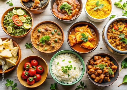indian food, bowl, food photography, miniature, artistic, photo, cookery, dish, curry, vegetable, rice, dal, spice, colourful, light background, still life, delicious, appetising, eatery, menu, tasty, healthy, closeup