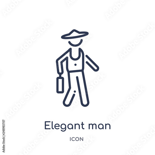 elegant man with suitcase icon from people outline collection. Thin line elegant man with suitcase icon isolated on white background.
