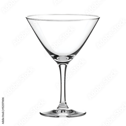 Elegant Martini Glass: A pristine, empty martini glass, poised with refined simplicity against an isolated backdrop, embodies sophistication and the art of mixology.