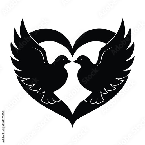 Elegant mirrored dove and heart silhouette composition symbolizing peace love and unity in a clean vector design
