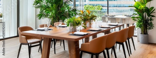 dining, table, chair, interior, modern, design, decor, plant, greenery, sunlight, roomy, wood, aesthetic, elegance, eatery, hospitality, comfort, fresh, setting, environment, urban, style, contemporary, space, atmosphere, inviting, warm, relaxing, cookery, meal, elegant, landscape, architecture, ambience, art, minimalism, centrepiece, arrangement, utensil, seating