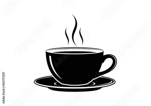 Elegant monochrome coffee cup illustration with rising steam aroma