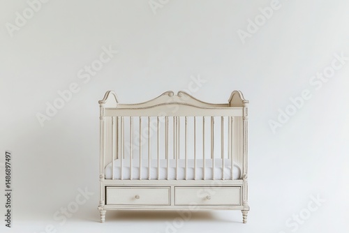 crib, baby, furniture, bedchamber, childcare center, infant, toddler, children, children, white, off-white, cream, beige, wood, wooden, classic, elegant, stylish, ornate, delicate, beautiful, charming, lovely, graceful, sophisticated, traditional, antique, vintage, retro, modern, contemporary, minimalist, simple, clean, design, home, decor, room, storage, drawer, comfortable, safe, secure, sleep, rest, relaxation, peaceful