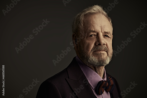 old man, man, copy space, elegant, elderly, old age, wisdom, portrait, wrinkle, person, senior, fashion, male, life, beard, face, mature, old, caucasian, expression, age, photogenic, serious, studio, happy, businessman, black, 1, shirt, business, head, year, suit, closeup, posing, fashionable, well-groomed, pensioner, pension, style, beauty, grandfather, bow tie, vogue, confident, lifestyle, famous