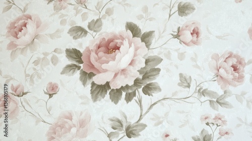 Elegant pastel floral wallpaper with soft ivory and pale pink tones.
