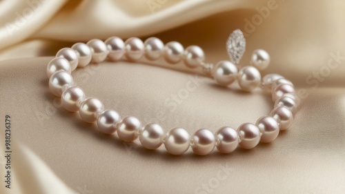 Elegant pearl bracelet resting on soft satin fabric, perfect for showcasing luxury and sophistication in jewelry photography.