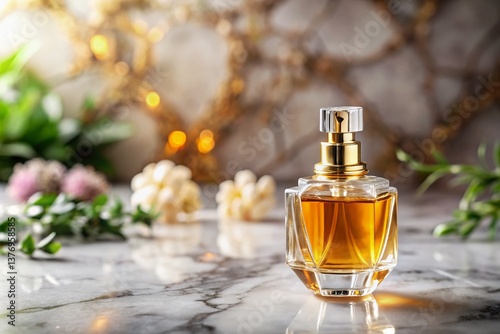 Elegant Perfume Bottle on Marble Surface - Luxury Fragrance Product Photography
