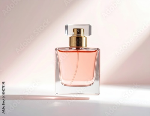 Elegant Perfume Bottle with Pink Scent on Soft Pink Background