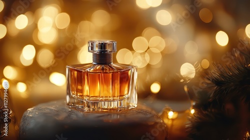 Elegant Perfume Bottle with Soft Bokeh Background and Warm Lights