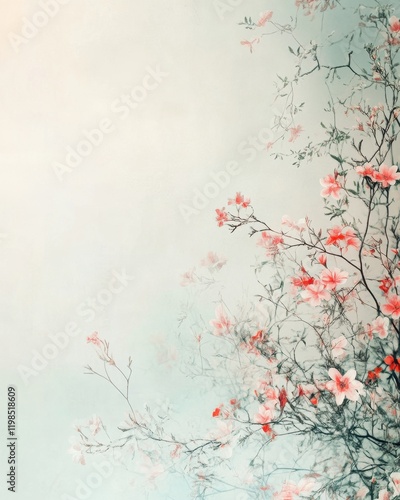 blossom, floral, flower, flower, branch, tree branch, background, artistic, vintage, watercolor, texture, elegant, delicate, botanical, plant, nature, spring, pastel, soft, light, airy, dreamy, pattern, painting, illustration, design, graphic, artwork, creative, decorative, feminine, graceful, blooming, bloom, flora, serene, tranquil, peaceful, subtile, wallpaper, template, blank space, empty space, light pink, organic, natural