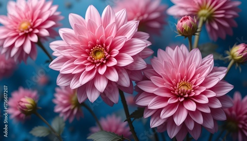 Elegant Pink Dahlias on Artistic Blue Background