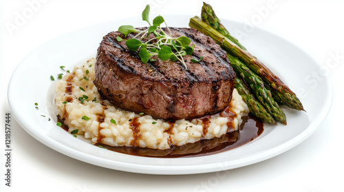 beef, fillet, tender, elegant, plate, epicure, cookery, risotto, creamy, asparagus, grilled, herb, meal, dinner, eatery, dining, food, dish, cooking, culinary, presentation, fresh, dining table, savoury, tenderloin, protein, texture, colours, indulgence, delicious, vibrant, fork, knife, ingredient, grilling, garnishing, plating, spice, quality, life events, fine dining, upscale, satisfaction, enjoyment, nourishment