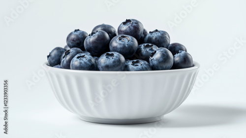 Elegant porcelain bowl with fresh ripe blueberries on a fully isolated white background for content creators.