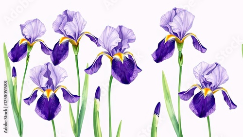 Elegant Purple Iris Flowers Botanical Illustration Spring Bloom Floral Design