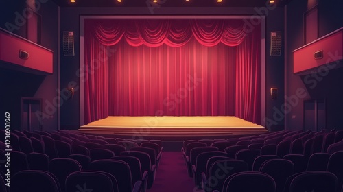 Elegant Red Curtain Stage in a Quiet Theatre Setting