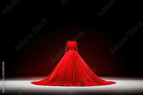 dress, fashion, gown, red, elegance, design, stage, lighting, fabric, style, beauty, sewing, model, showcase, textile, art, luxury, photo, silhouette, creativity, vibrant, presentation, runway, glamour, exhibition, visual, stunning, artistic, contemporary, aesthetic, statement, trend, unique, timeless, inspiration, bold, artistry, craftsmanship, chic, modern, allure, sophisticated, dramatic